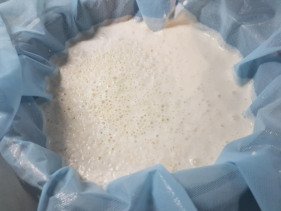 Przepuszczamy przez gazę, tkaninę, bardzo cienkie sitko lub jak ja przez chustę serowarską (ja wyścieliłem durszlak chustą). Najważniejsze, żeby się nie śpieszyć. Można masę podlewać mała ilością wody, żeby wypłukiwać białko. Po tym jak większa część płynu odciekła powtarzamy blendowanie masy z dodatkiem wody. Ja blendowałem masę 4 razy. Wyszło ponad 3 litry „mleka”. Wytłoczyny nie wyrzucajcie! Poszukajcie przepisów na jej wykorzystanie!