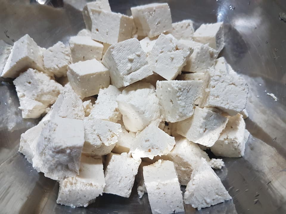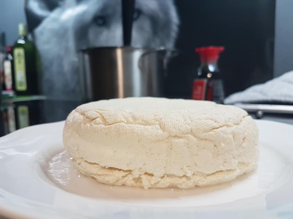 Odciskamy tofu – im mocniej tym będzie sprężystsze. Jak już uformujemy to wrzucamy do zimnej wody i dajemy dojść (nabierze większej elastyczności). Tofu trzymamy w wodzie i wyjmujemy przed wykorzystaniem.