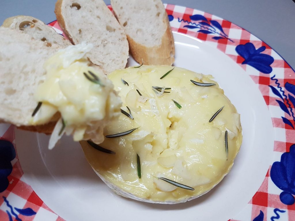 Pysznych przystawek z sera Camembert ciąg dalszy. Tym razem jeszcze prostszy przepis – Camembert pieczony z czosnkiem i rozmarynem w piekarniku. Ser zmienia konsystencję i przypomina trochę sery smażone. Coś cudownego.